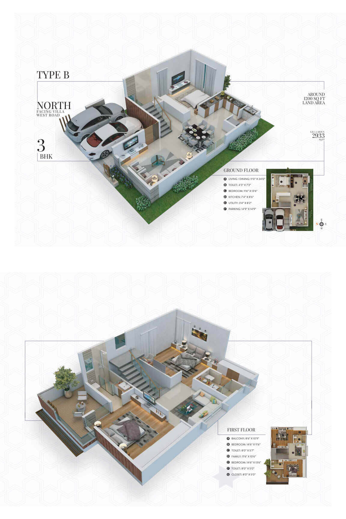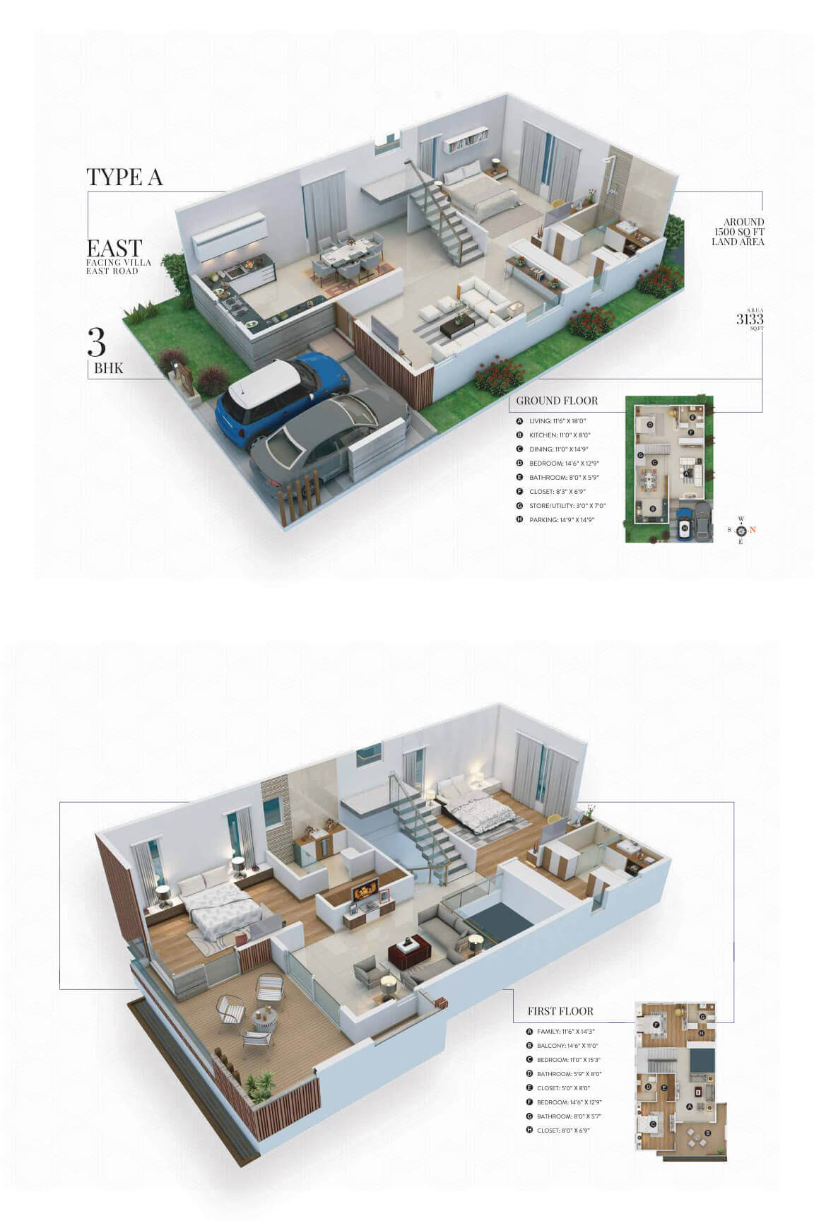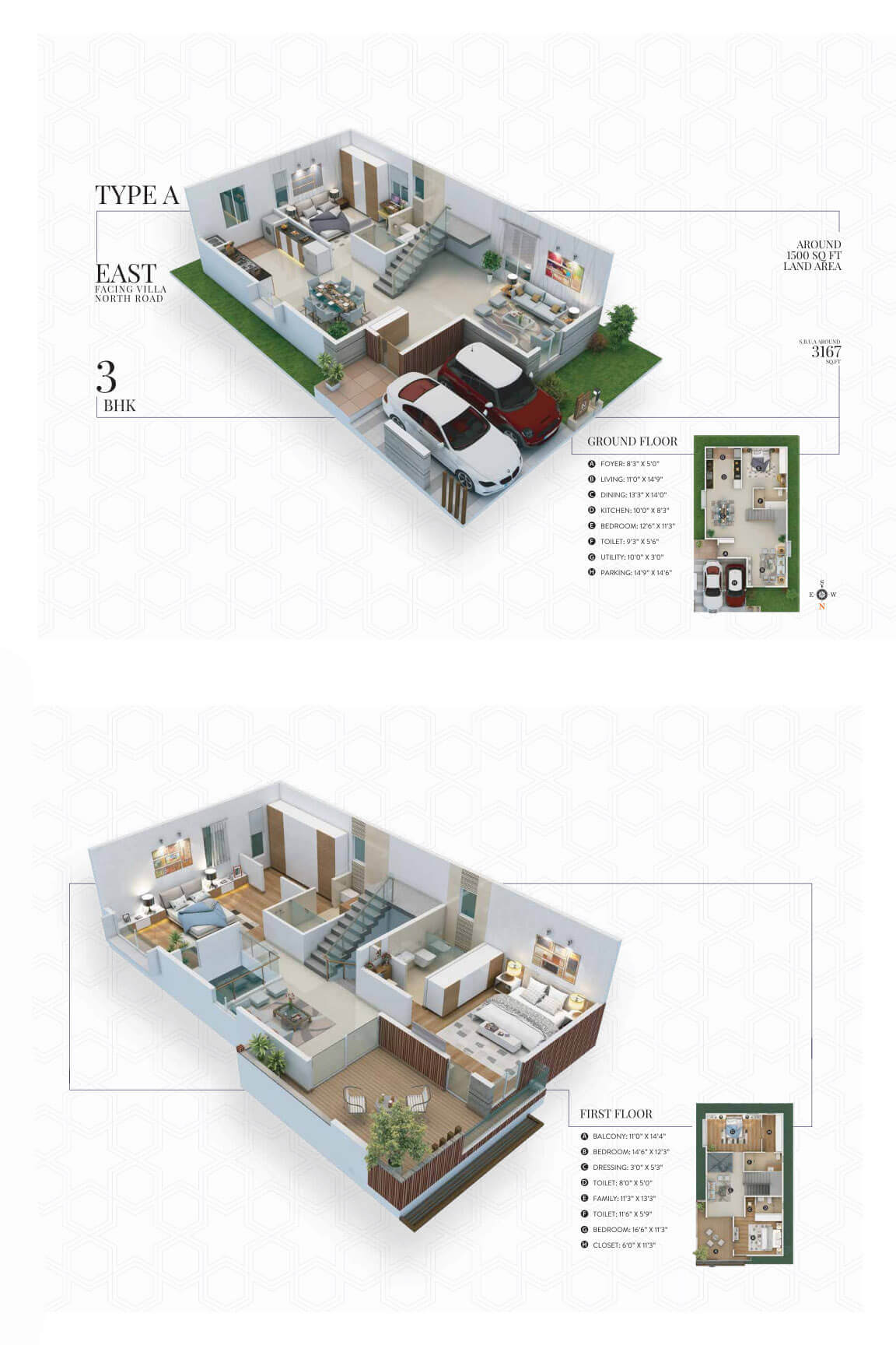 In all, this premium residential destination will host super luxury villas that span across two categories of land area around 1500 Sqft(Type A) and 1200 Sqft (Type B) with SBUA ranging from 2533 Sqft to 3767 Sqft varied for 3 & 4BHK villas accompanied by a variety of luxury amenities for signature living. Each villa at Daiwik Sapphire is designed to outclass your imagination of a villa that complements your lifestyle.